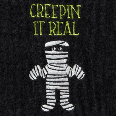 Add extra fun and whimsy to the Halloween season with this decorative 2-piece hand towel set. Made of soft cotton velour it features striped dobby trim along the hem and “Creepin It Real” embroidery with a mummy. Can be used in the bath or kitchen, and also makes a fun gift. Shop coordinating items to complete the look; sold separately. SKL Home by Saturday Knight Ltd. brings personality, fun, and flair to the most intimate spaces in your home with products ranging from bath accessories and shower curtains to towels, curtains, and beyond. Whether your style is upbeat and modern or classic and cozy, SKL Home provides a look to complement almost any décor. Combining 40+ years’ experience, global design inspiration, and premium fabrications, SKL Home continues to lead the way in home accessories.