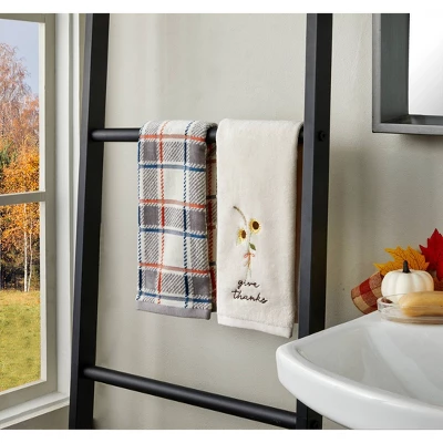 Give Thanks with this 2-piece hand towel set. Made of soft cotton, this set includes 2 different hand towels. One hand towel is featured in a velour finish with “give thanks” sunflower embroidery, and the other is a jacquard with a multi-tone plaid pattern. This towel set can be used in the bath or kitchen and makes a great housewarming or host/ hostess gift. At SKL Home we bring personality, fun, and flair to your space with the best in home décor. We’re a close-knit, small company full of big ideas in a wide variety of styles. From upbeat and modern, to classic and cozy, SKL Home has a look to complement any space. Combining 40+ years’ experience, global design inspiration, and the best fabrications, our employee-owned company continues to lead the way in home accessories.