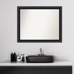Give your bathroom the finishing touch with this 100% real wood Non-Beveled Wall Mirror framed with the Nero Black frame. Individually made using traditional custom framing techniques, it has the quality you would expect from your local frame shop. It holds its value with premium finishing that can be appreciated up close. Because of our attention to detail and focus on artistry, architects, interior designers, and homeowners alike choose this mirror to create beautiful living spaces.