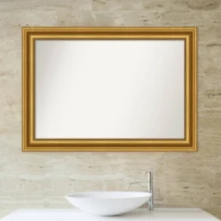Give your bathroom the finishing touch with this Non-Beveled Wall Mirror framed with the Parlor Gold frame. Individually made using traditional custom framing techniques, it has the quality you would expect from your local frame shop. It holds its value with premium finishing that can be appreciated up close. Because of our attention to detail and focus on artistry, architects, interior designers, and homeowners alike choose this mirror to create beautiful living spaces.
