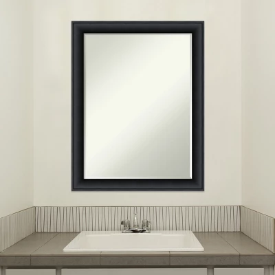 Give your bathroom the finishing touch with this 100% real wood Petite Bevel bathroom mirror. The Nero Black frame is a modern, black frame with a slightly rounded profile, raised edge, and satin finish.. The frame is 2 in. wide and stands 1 in. off the wall. It’s Individually made using traditional custom framing techniques, it has the quality you expect from your local frame shop. It holds its value with premium finishing that can be appreciated up close. Because of our attention to detail and focus on artistry, architects, interior designers, and homeowners alike choose this mirror to create beautiful living spaces.