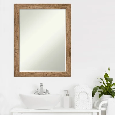 Give your bathroom the finishing touch with this 100% real wood Petite Bevel bathroom mirror. The Owl Brown Narrow frame is a natural wood frame with a slight scoop and woodgrain variation showing through. The finish is warm light brown with grey, cream, and mauve tones.. The frame is 2 in. wide and stands 0.75 in. off the wall. It’s Individually made using traditional custom framing techniques, it has the quality you expect from your local frame shop. It holds its value with premium finishing that can be appreciated up close. Because of our attention to detail and focus on artistry, architects, interior designers, and homeowners alike choose this mirror to create beautiful living spaces.