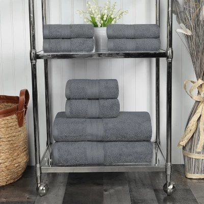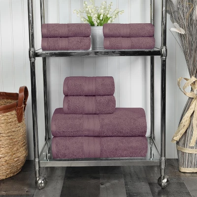 Incredibly soft and quick-drying, the Rivendale Cotton Solid Assorted 8-Piece Towel Set is just what you need to bring the spa-vibe home. This premium Long Staple Combed Cotton construction boasts a heavy towel weight, making each towel thick and highly absorbent to keep you warm and get you dry quickly. These ultra-plush and fluffy towels will soak up moisture effortlessly, keeping you toasty warm as soon as you step out of the shower or bath. Available in a range of color options to easily mix and match with your existing bathroom décor, each towel in this bundle features a decorative dobby border for modern style.