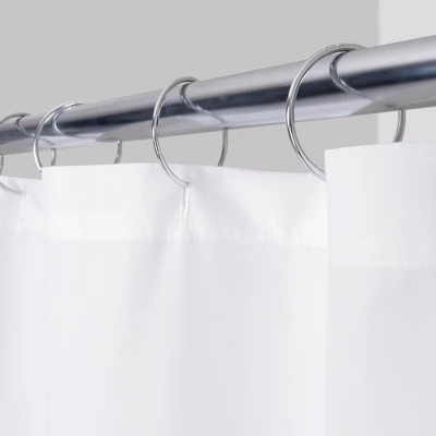- Reinforced header with 12 buttonhole openings fits standard shower hooks (not included)
