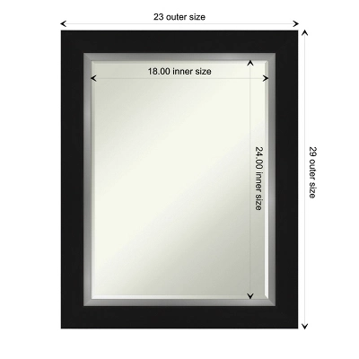 - MIRROR DETAILS: This mirror features premium glass for a clear, undistorted image and is finished with a petite 1/2-inch beveled edge which is more delicate than a traditional bevel. The overall size of this bathroom mirror measures 23.5 x 29.5 inches, including the frame. Its reflective area measures 18 x 24 inches.