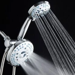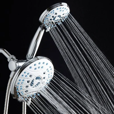 Revolutionary AquaCare hand shower features advanced 8-setting 5-zone and giant 6-setting 6″ shower head that can be used separately or together. Choose from 50 different water flow patterns for a drenching shoulder-to-shoulder shower spa experience. Both heads have Anti-clog Nozzles that prevent accumulation of grime inside. So while other showerheads clog and lose water pressure over time, AquaCare nozzles remain clean and clog-free for years of flawless performance. Tired of that disgusting soap scum and dried hair left behind after each shower? Now you can clean it all in seconds from up to 6 feet away, without setting a foot in your shower. Simply flip the AquaCare handle and turn it into a High-pressure Power Wash! Use Wide Fan to quickly rinse off large areas, or switch to Point Jet and instantly blast away the stubborn grime! AquaCare was designed to be relentless on the toughest grime, yet gentle on your pet. Simply set your faucet to the best water pressure for your dog’s fur length and density, then use our unique Dual-width Fan Spray to thoroughly rinse out shampoo in seconds. It provides the perfect flow pattern for a fast and effortless pet shower, regardless of their size and breed. Easy tool-free installation, no plumber needed. Fits any standard shower arm.