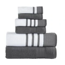 - 6-piece towel set includes 2 bath towels (30 x 54), 2 hand towels (16 x 28), and 2 washcloths (13 x 13)