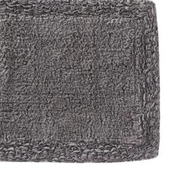 Designed to sit alongside your tub, shower, or sink and provide a comfortable, warm, dry spot for you to stand, the Rosario rug will coordinate with infinite decorating styles. This solid hued rug is designed to blend in with your existing color scheme. For added design interest, several rows of cotton fabric ruffles make up the approximately 2.5″ border all around the rug.