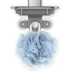 Organize shower clutter with this over door shower caddy. Installation is easy — just hook the adjustable hanger over the shower door and it automatically tightens for a secure grip. It has fully adjustable shelves that are easy to reposition with quick-adjust dials. An innovative divider and accessory hooks are designed to hold bulky modern tools like facial cleansing brushes and oversized razors. The quick-dry soap dish drains water completely so soap stays dry and lasts longer. Constructed from stainless steel and anodized aluminum so it is rust-proof and easy to clean.