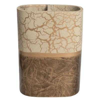 The Parker bathroom accessory set adds sophistication and a touch of glamour to your bathroom décor. This modern handcrafted resin collection is luxurious, stylish, and helps keep your bathroom décor clean, fresh, and organized. Set includes: a tumbler, lotion/soap dispenser, toothbrush holder and soap dish. The Parker accessory collection is textured with a weathered beige, brown and gold finish for a subtle addition of style. Each piece is hand crafted in a durable resin. Each item is easy to wipe clean and made to last a lifetime. This ultra-luxurious collection will surely add contemporary charm to your bathroom.