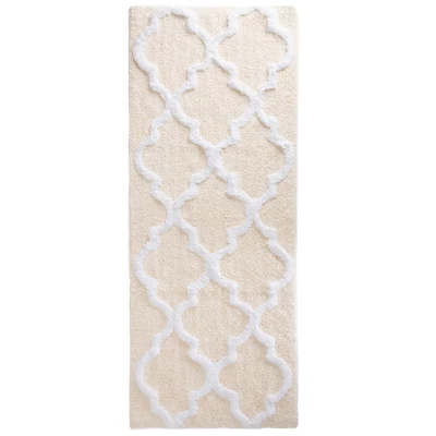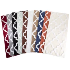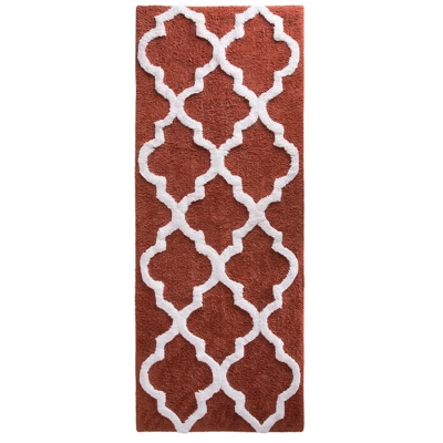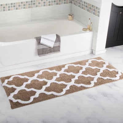 Bring life to your bathroom with the premium 100% Cotton Trellis Bathroom Mat. The Trellis pattern brings a European regal look right to the bathroom. A transparent anti-skid spray latex backing is added for keeping rugs safely in place. This 100% cotton rug makes a super absorbent choice and is machine washable. Extremely plush with cut loop velour finish, this bath mat feels as luxurious as it looks.